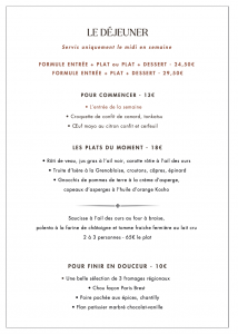 Le midi, une formule simple, rapide et gourmande à partir de 24,50€ entrée et plat