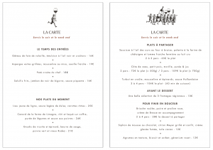 Une carte courte, évolutive, qui suit les saisons et valorise les produits locaux, renouvelée toutes les semaines